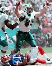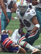 Miami's defense beat down the Bills to win 13-7. They had eight sacks, with Trace